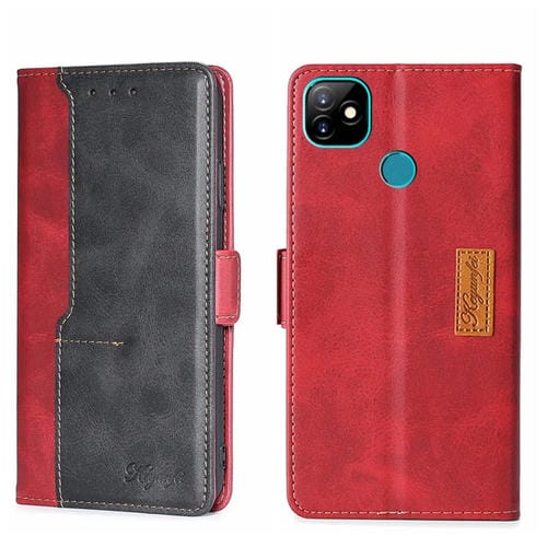 Caja de Teléfono de Cuero para Itel Vision 1 con Hebilla Lateral y Color de Contraste (Rojo + Negro)