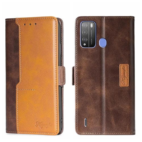 Funda de Cuero para Itel Vision 1 Pro con Hebilla Lateral y Contraste (Marrón Oscuro + Dorado)