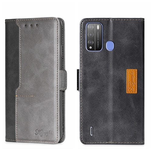 Funda para Itel Vision 1 Pro Caja de Teléfono de Cuero con Hebilla Lateral (Negro + Gris)