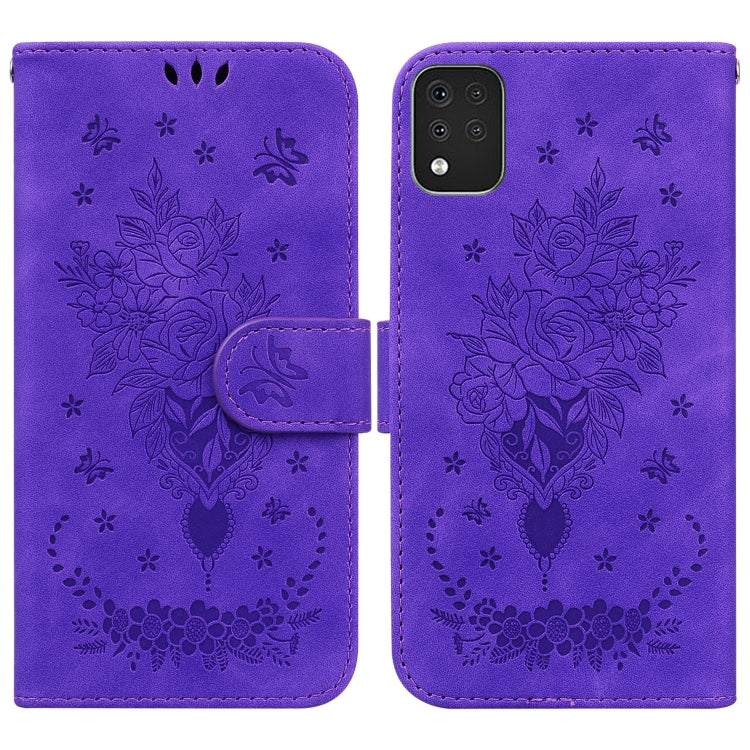 Funda de Cuero En Relieve Rose para LG K42 Butterfly (Púrpura)