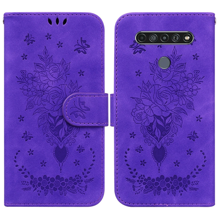 Funda de Cuero en Relieve Rose para LG K61 Butterfly (Púrpura)