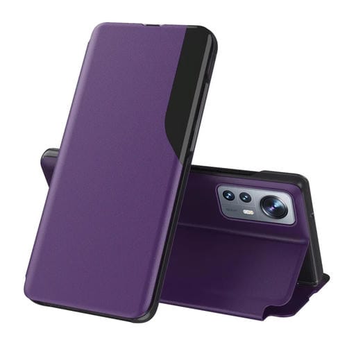 Para la Caja del Teléfono de Cuero Flip de Pantalla Lateral Xiaomi 12 Pro con Soporte (Púrpura)