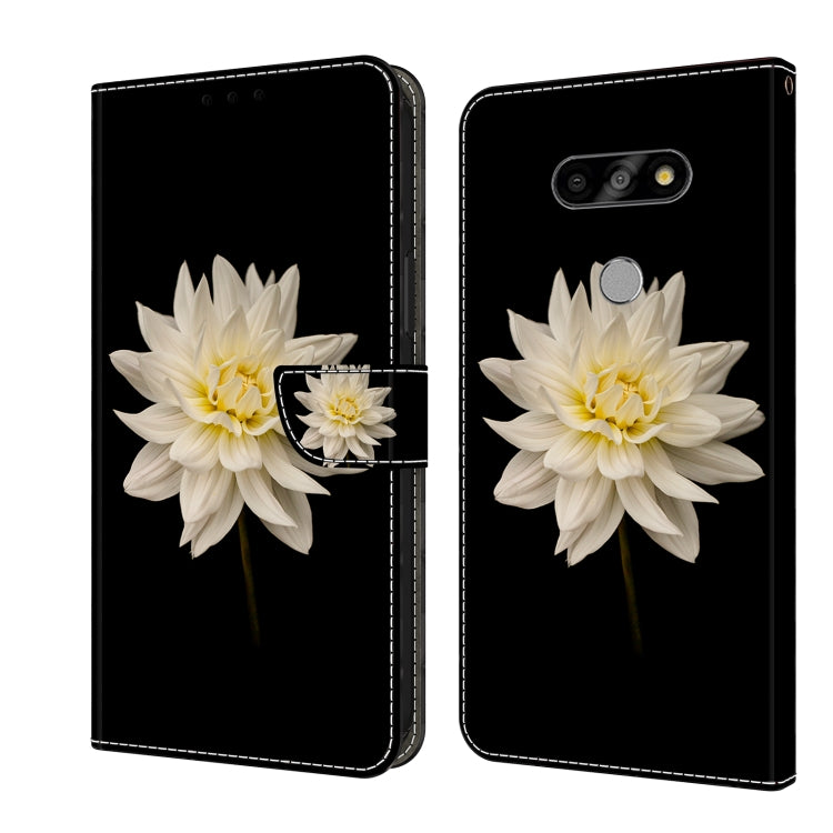Funda Protectora de Cuero para LG K31 Crystal 3D a Prueba de Golpes (Flor Blanca)