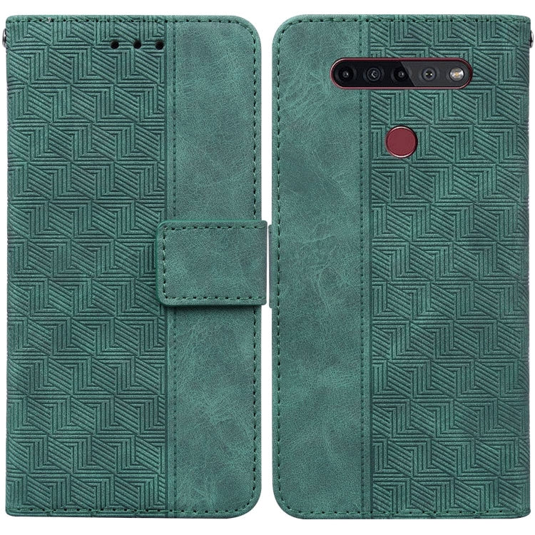 Funda de Cuero para LG K41S y K51S con Relieve Geométrico (Verde)