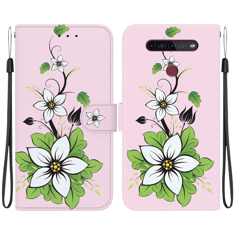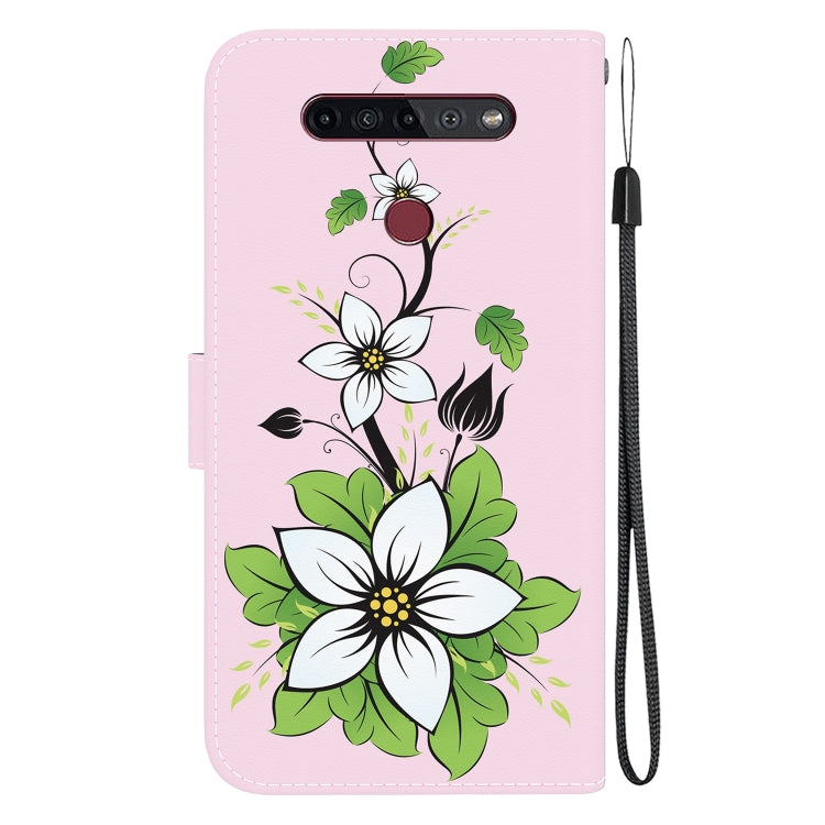 Funda de Cuero para LG K41S y K51S con Dibujo Coloreado y Textura de Cristal (Lirio)