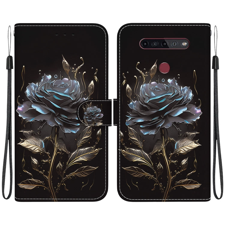 Funda para LG K41S / K51S Cuero con Dibujo Coloreado y Textura de Cristal (Rosa Negra)