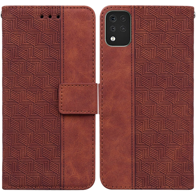 Funda de Cuero para LG K42 en Relieve Geométrico (Marrón)