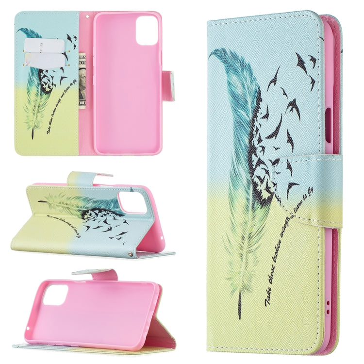 Funda de Cuero Horizontal para LG K42 con Soporte, Ranuras para Tarjeta y Billetera (Pluma)