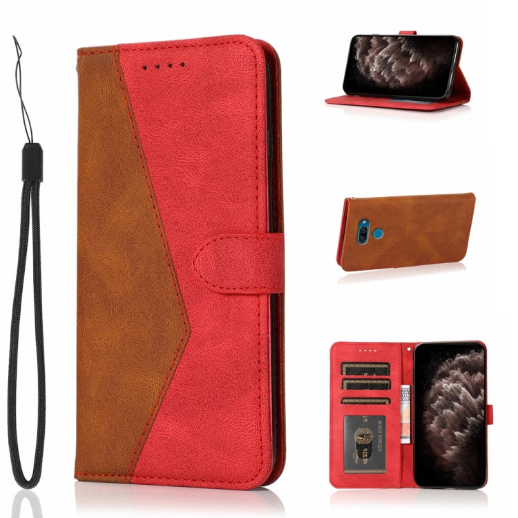 Estuche para Teléfono LG K50 Q60 de Cuero con Costuras Dos Colores (Marrón Rojo)