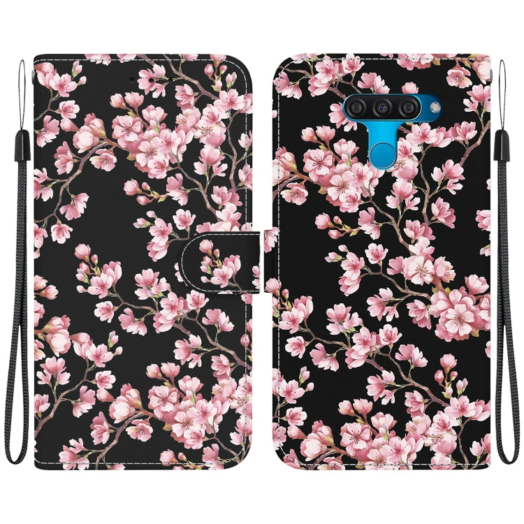 Funda para LG K50 / Q60 de Cuero con Dibujo Coloreado y Textura de Cristal (Flor de Ciruelo)