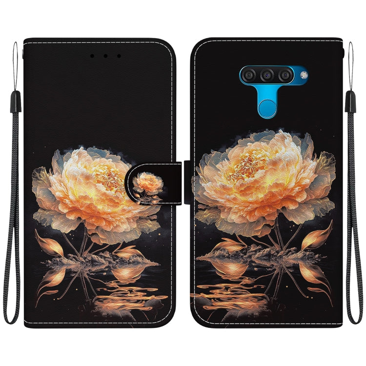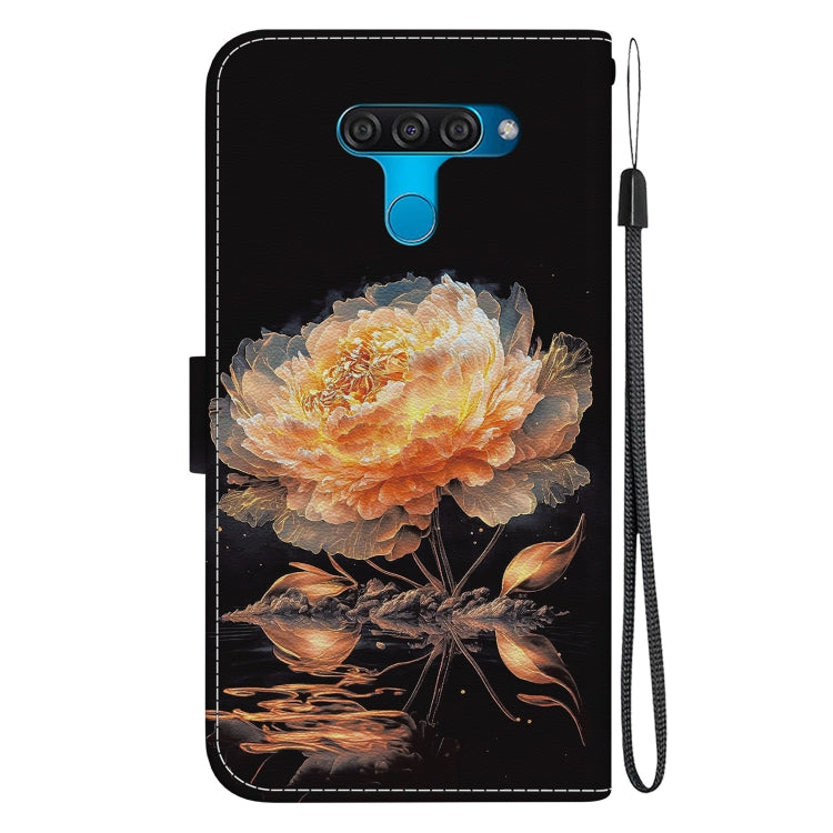 Funda para LG K50 / Q60 de Cuero con Dibujo Coloreado y Textura de Cristal (Peonía Dorada)