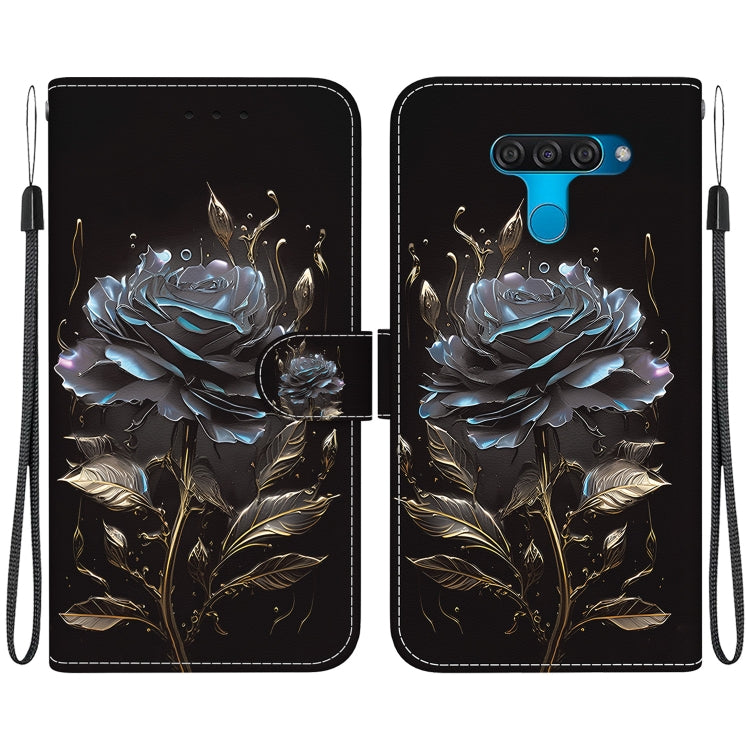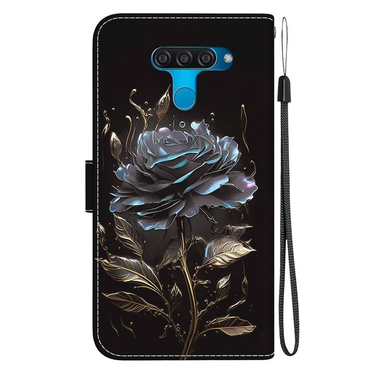 Funda para LG K50 / Q60 de Cuero con Dibujo Coloreado y Textura de Cristal (Rosa Negra)