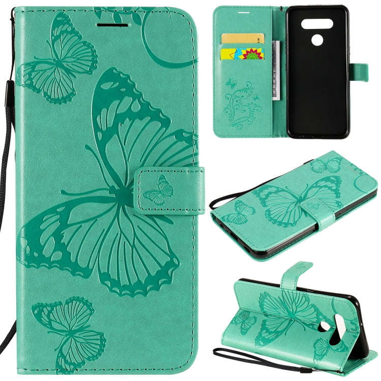 Funda de Cuero para LG K51 con Tapa Horizontal, Patrón Mariposa 3D, Soporte, Ranura para Tarjeta y Cordón (Verde)