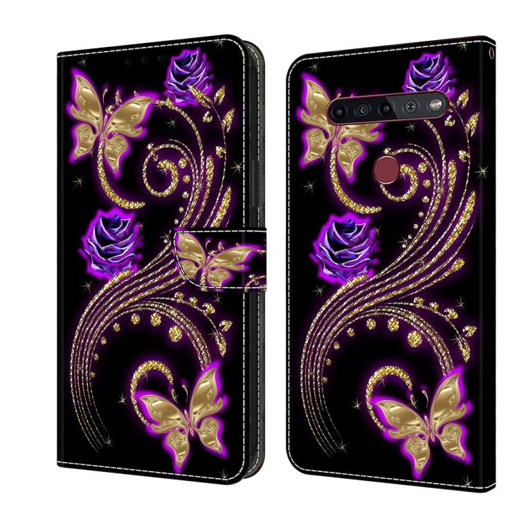 Funda Protectora de Cuero para LG K51S Crystal 3D a Prueba de Golpes (Mariposa de Flor Púrpura)