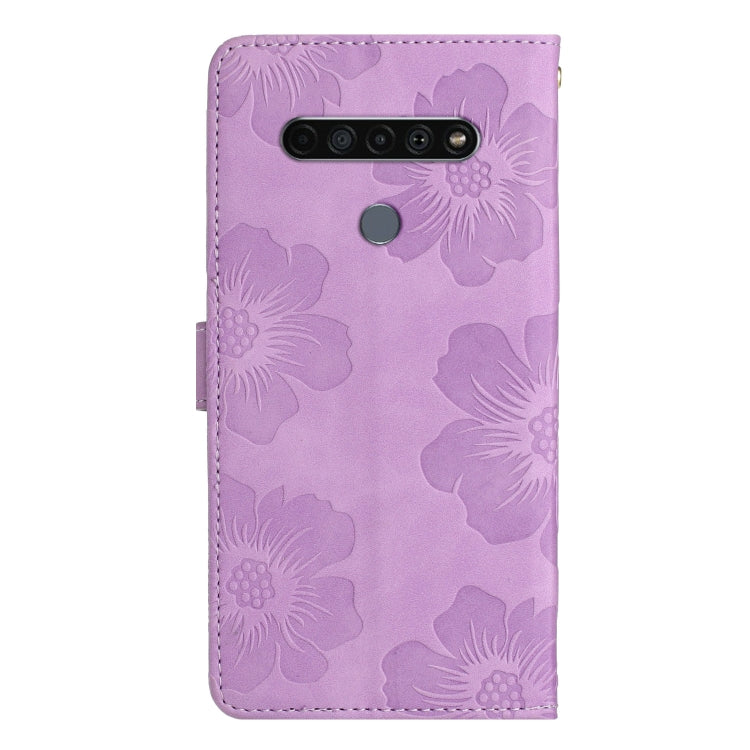 Funda de Cuero para LG K51S con Patrón de Estampado de Flores (Púrpura)