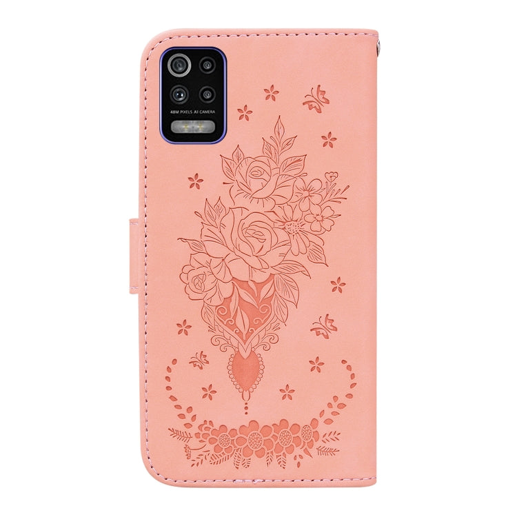 Funda de Cuero para LG K52 / K62 / Q52 Butterfly Rose Rossed (Rosa)