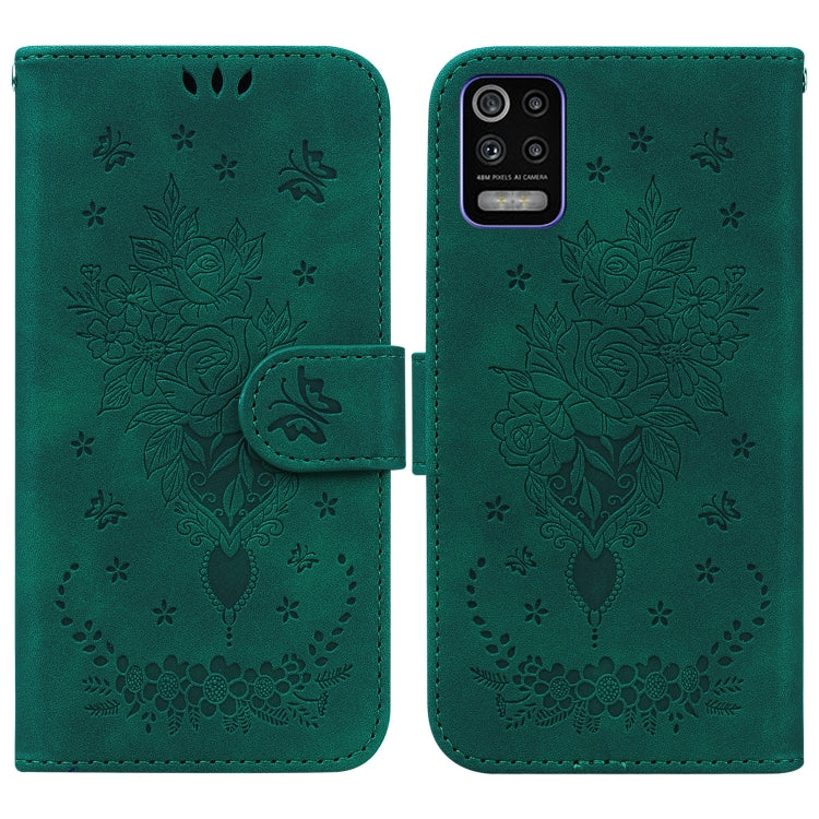 Funda de Cuero para LG K52 / K62 / Q52 Butterfly Rose Rossed Funcho (Verde)