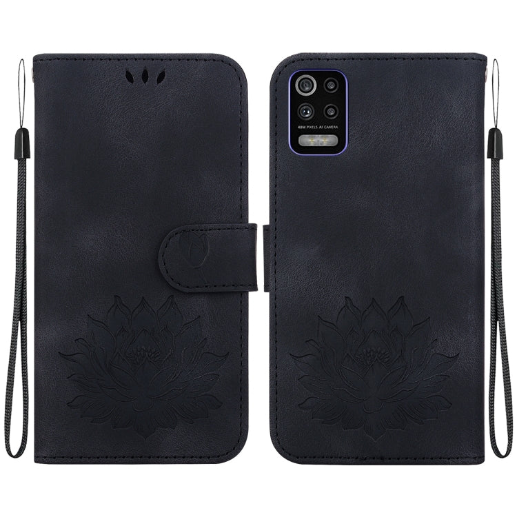 Funda de Cuero con Relieve de Loto para LG K52 / K62 / Q52 (Negro)