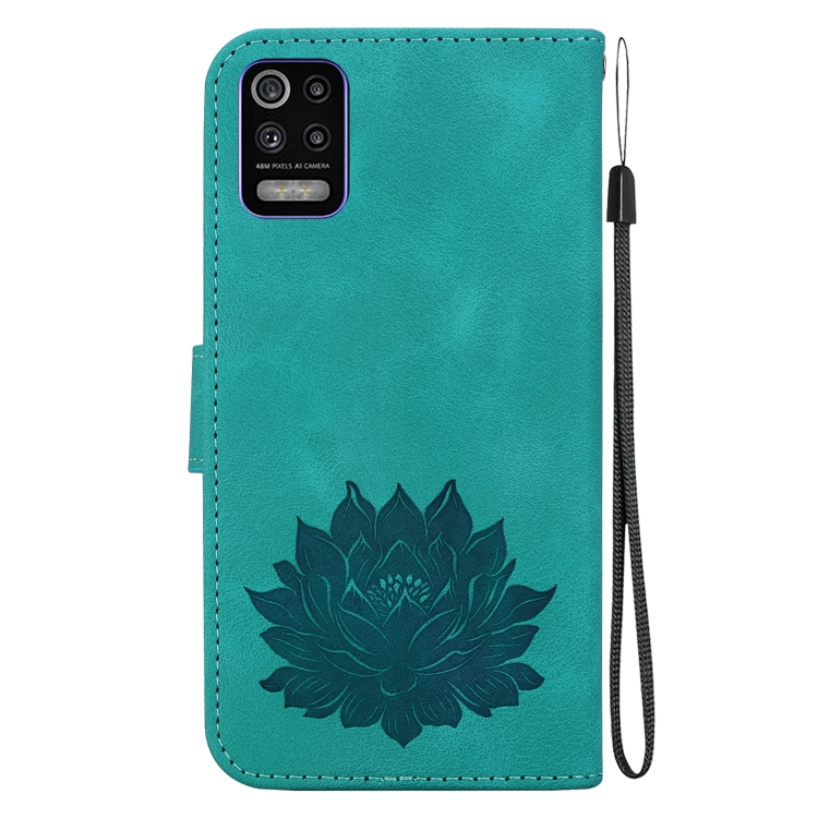 Funda de Cuero para LG K52 / K62 / Q52 con Relieve de Loto para Teléfono (Verde)