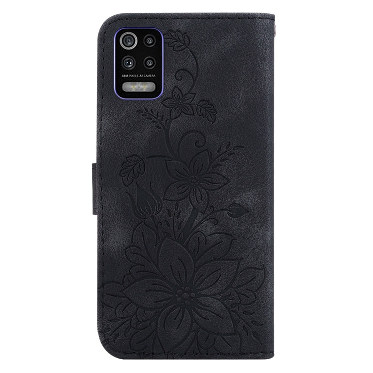 Funda para Teléfono LG K52 K62 Q52 Cuero con Relieve Lily (Negro)