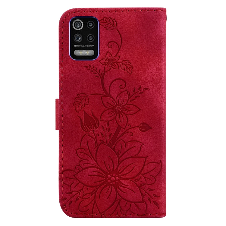 Funda para Teléfono LG K52 K62 Q52 Cuero con Relieve Lily (Rojo)