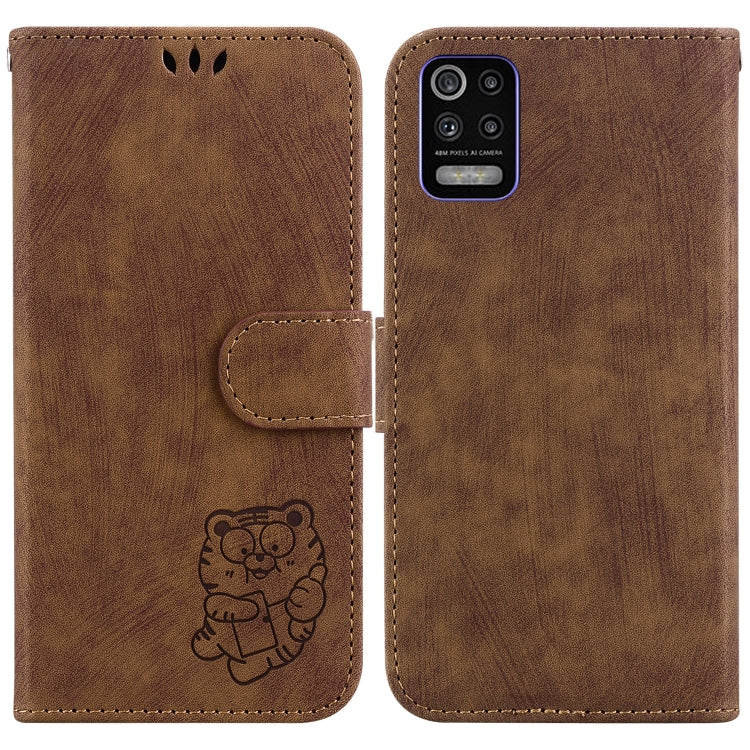 Funda para Teléfono LG K52 K62 Q52 Cuero con Relieve Little Tiger (Marrón)