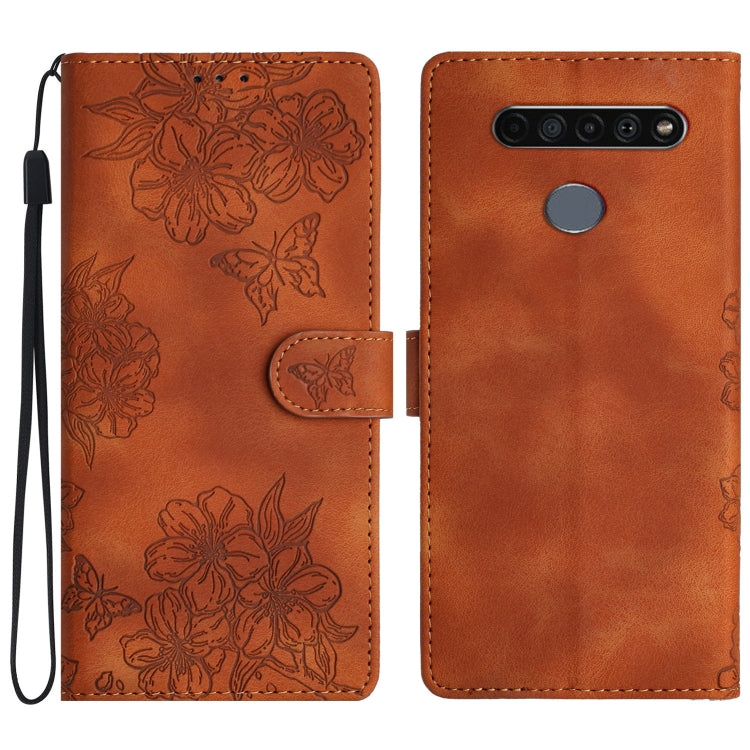 Funda para LG K61 Cherry Blossom Butterfly Skin Feel de PU En Relieve (Marrón)