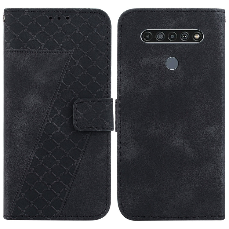 Funda de Cuero para LG K61 En Relieve Forma de 7 (Negro)