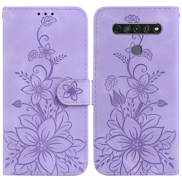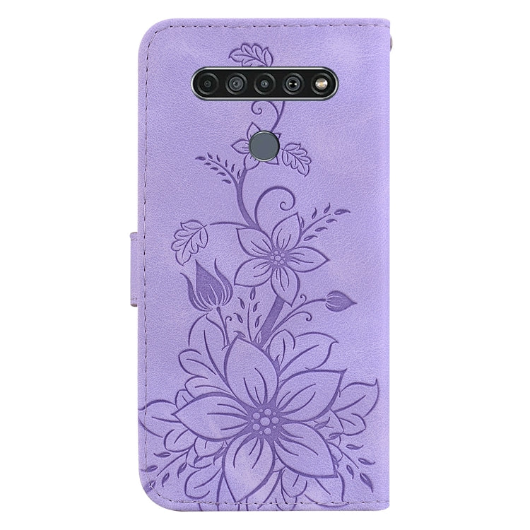 Funda de Cuero en Relieve para LG K61 Lily Teléfono (Púrpura)