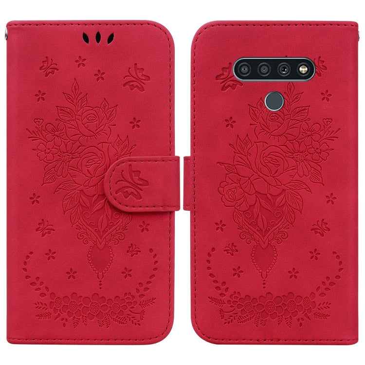 Funda de Cuero para LG K71 Stylo 6 con Relieve de Mariposa (Rojo)