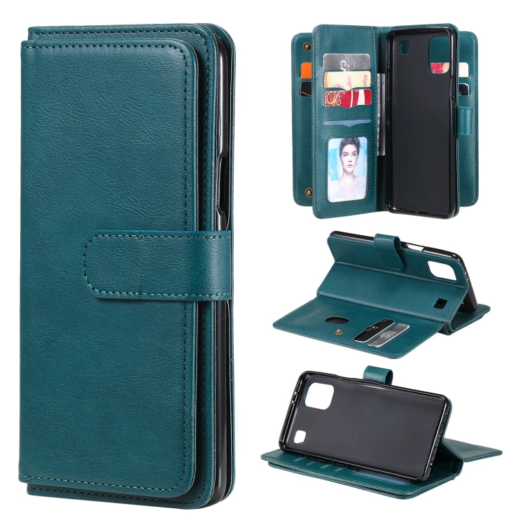 Funda Cuero LG K92 Multifuncional Hebilla Cobre Magnética Horizontal Flip (Verde Oscuro) con 10 Ranuras y Soporte