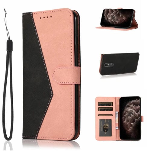 Estuche de Cuero para LG Stylo 5 con Costuras de Dos Colores (Negro, Rosa Dorado)