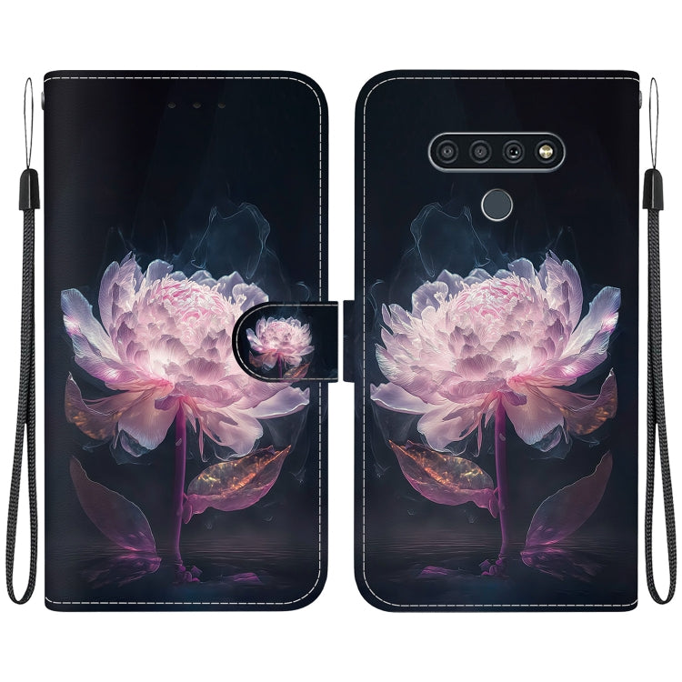 Funda de Cuero para LG Stylo 6 / K71 con Dibujo Coloreado y Textura de Cristal (Peonía Púrpura)