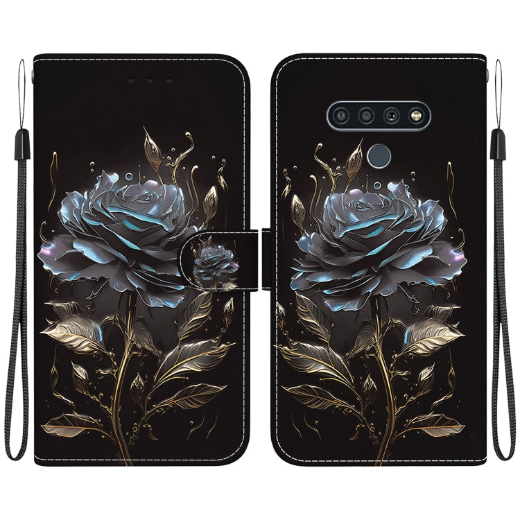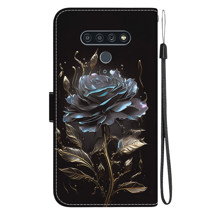 Funda de Cuero para LG Stylo 6 / K71 con Dibujo Coloreado y Textura de Cristal (Rosa Negra)