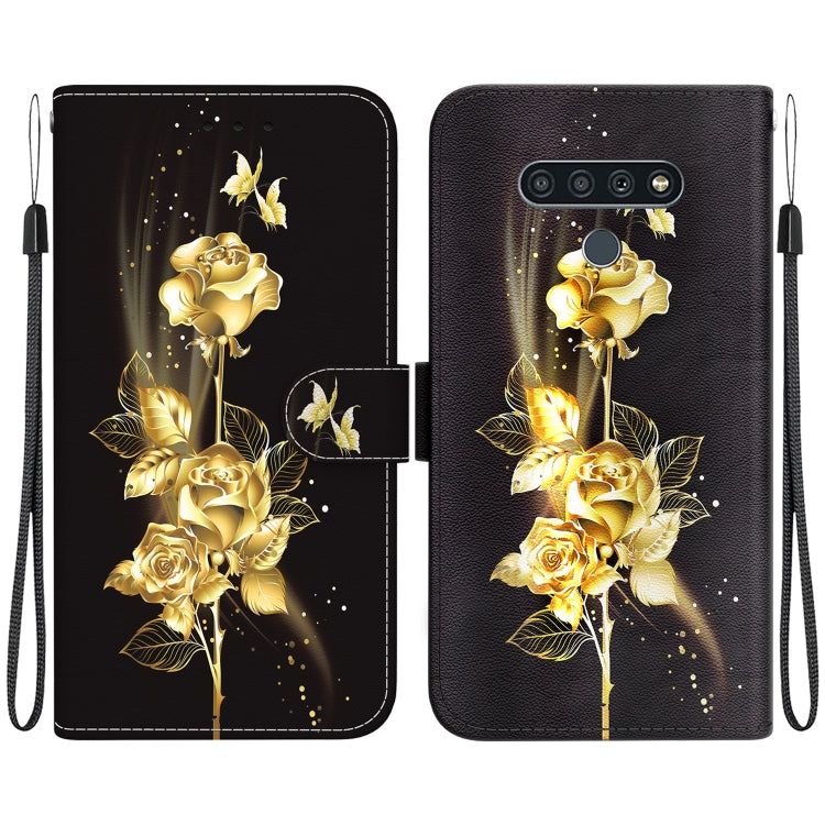 Funda para LG Stylo 6 / K71 de Cuero con Dibujo Coloreado y Textura de Cristal (Mariposa Dorada Rosa)