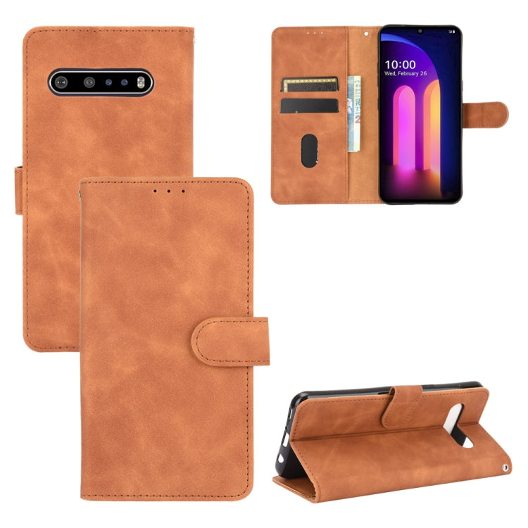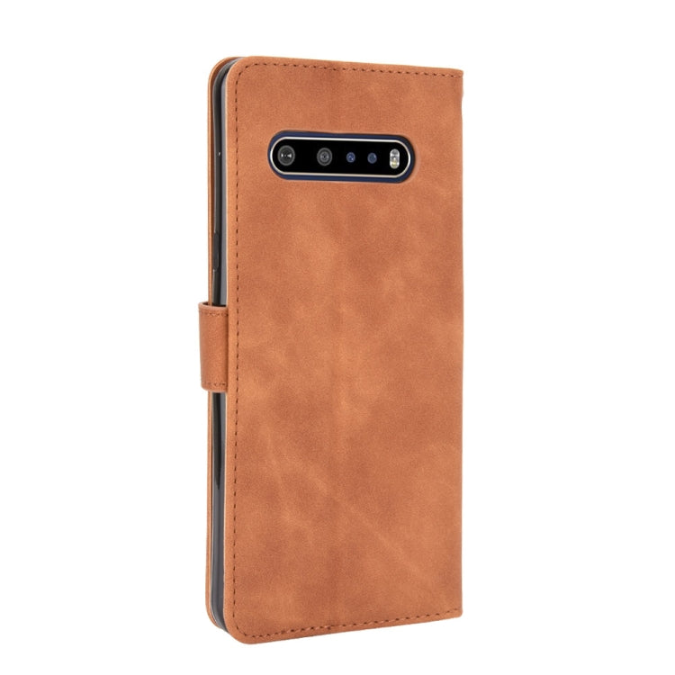 Funda Cuero PU para LG V60 Thinq 5G con Soporte, Hebilla Magnética, Ranuras para Tarjetas y Billetera (Marrón)
