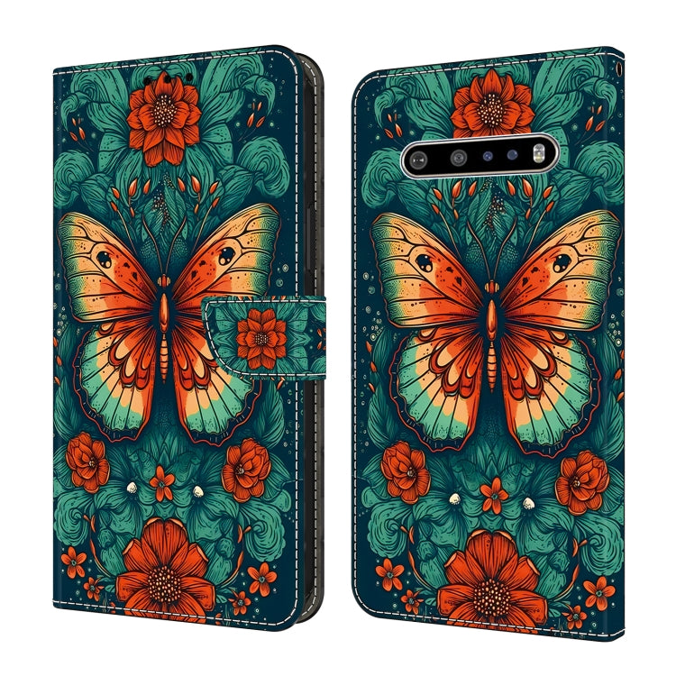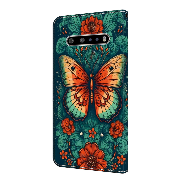 Funda de Cuero para LG V60 Thinq 5G con Cristales y Diseño Mariposa de Flores