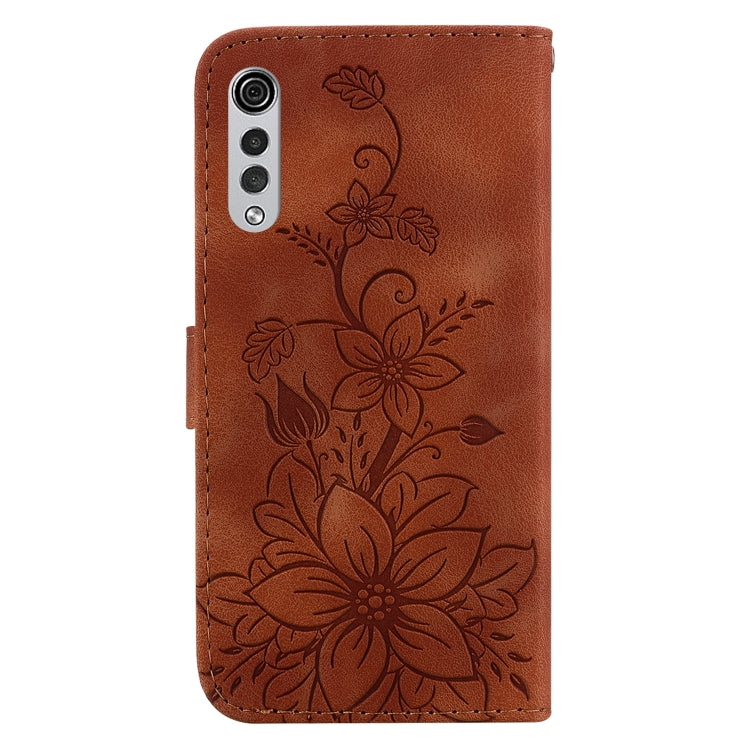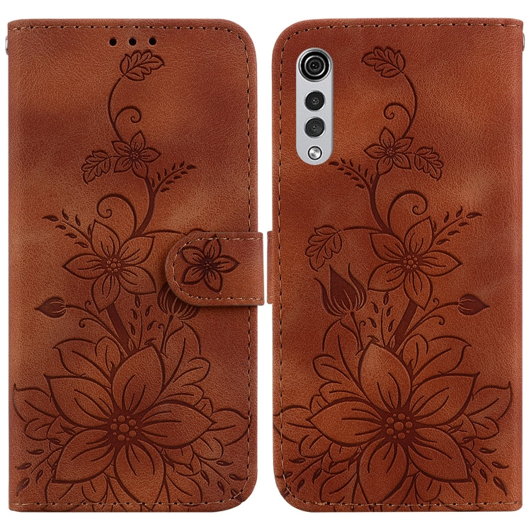 Funda de Cuero con Relieve Lily para LG Velvet 4G 5G G9 (Marrón)