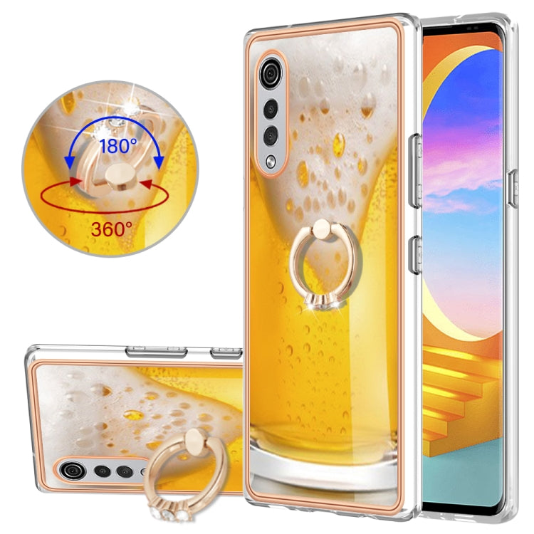 Funda para LG Velvet 5G / 4G / G9 Velvet Galvanoplastia Doble Cara con Soporte para Anillo (Cerveza de Barril)