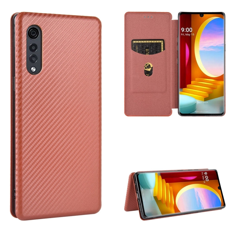Funda para LG Velvet Carbon Fiber Texture Magnético Flip Horizontal TPU + PC + PU con Ranura para Tarjeta (Marrón)