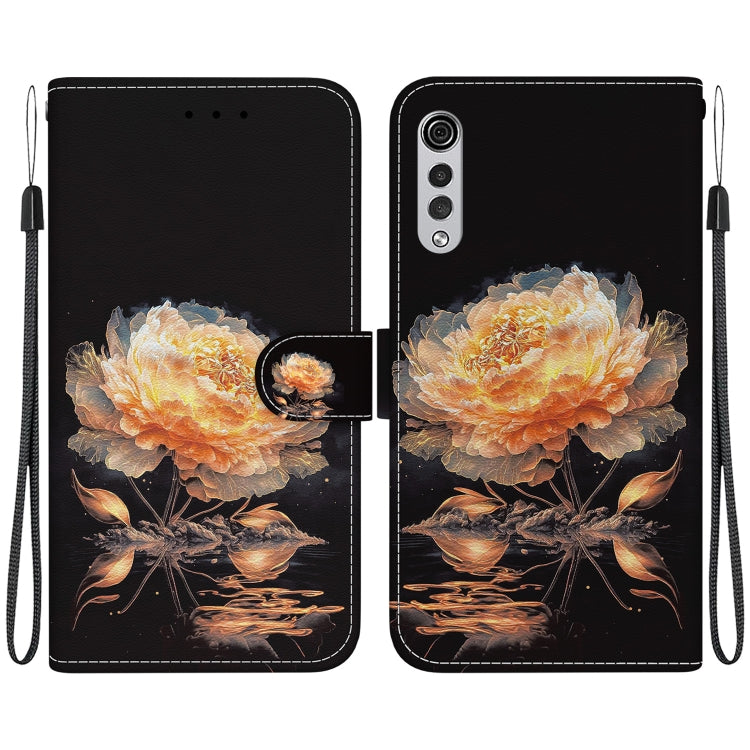 Estuche para Teléfono LG Velvet G9 de Cuero con Dibujo Coloreado y Textura de Cristal (Peonía Dorada)