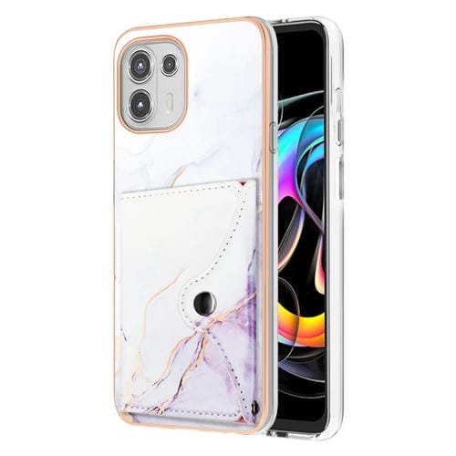 Estuche para Motorola Edge 20 Lite con Ranura para Tarjeta y Patrón Mármol (Blanco y Morado)