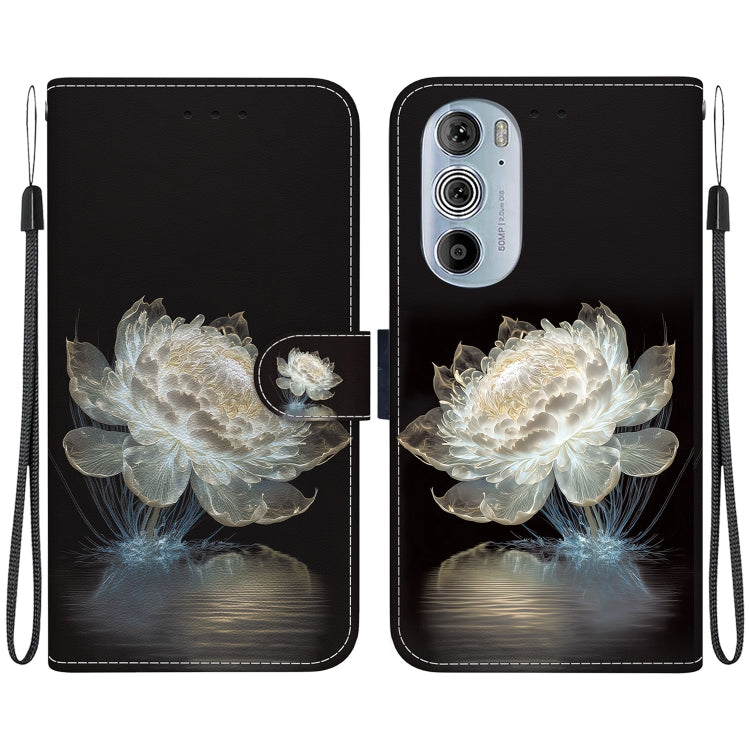 Estuche de Cuero para Motorola Edge + 2022 con Dibujo Coloreado y Textura de Cristal (Peonía de Cristal)