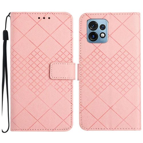 Funda de Cuero Motorola Edge + 2023 y Edge 40 Pro con Textura de Rejilla Rómbica (Rosa)