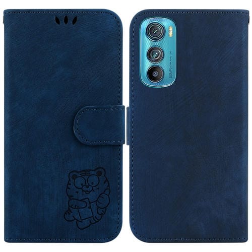 For Motorola Edge 30 Little Tiger Embossed Leather Phone Case(Dark Blue)