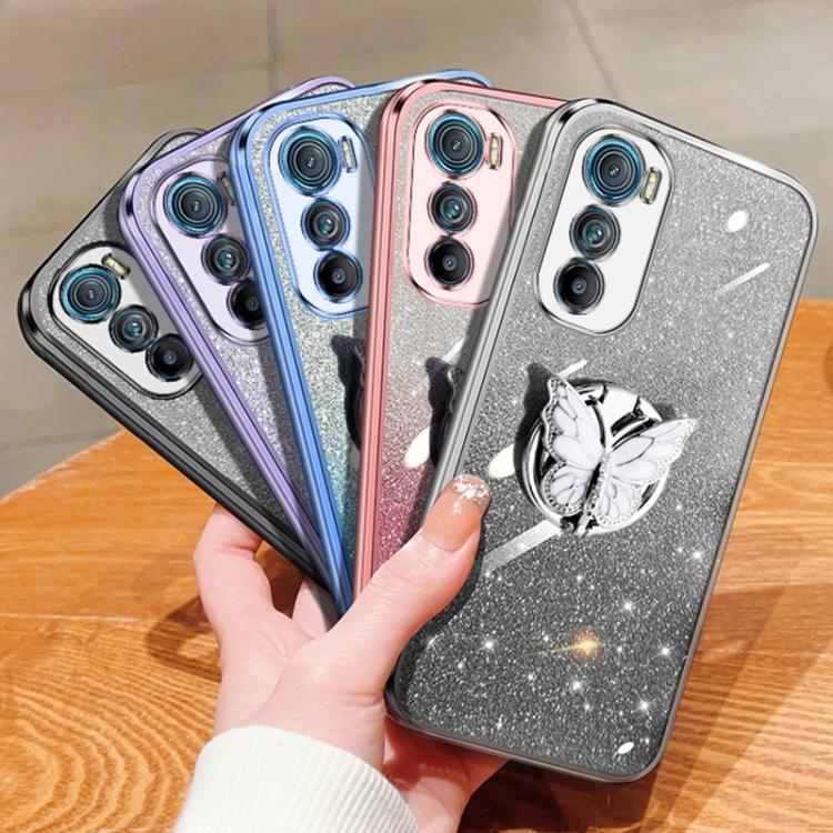 Funda para Motorola Edge 30 de TPU con Soporte de Mariposa y Brillo Degradado (Negro)