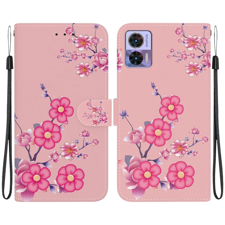Funda para Motorola Edge 30 Neo y 30 Lite de Cuero con Dibujo y Textura de Cristal (Flores de Cerezo)