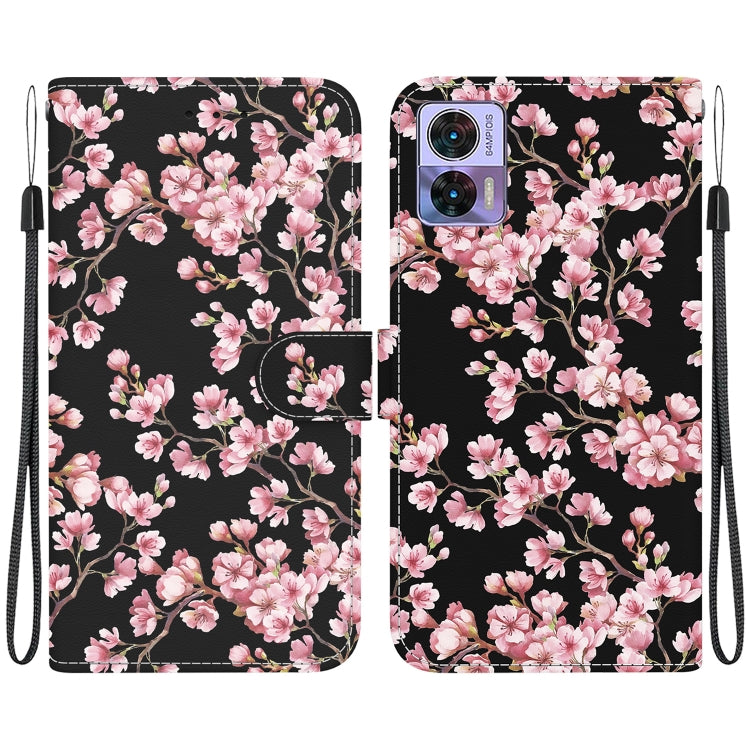 Funda para Motorola Edge 30 Neo y 30 Lite de Cuero con Dibujo Coloreado y Textura de Cristal (Plum Bossom)
