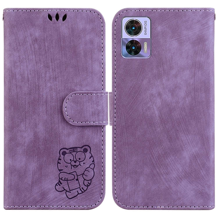 Funda para Motorola Edge 30 Neo y 30 Lite de Cuero con Relieve Little Tiger (Púrpura)