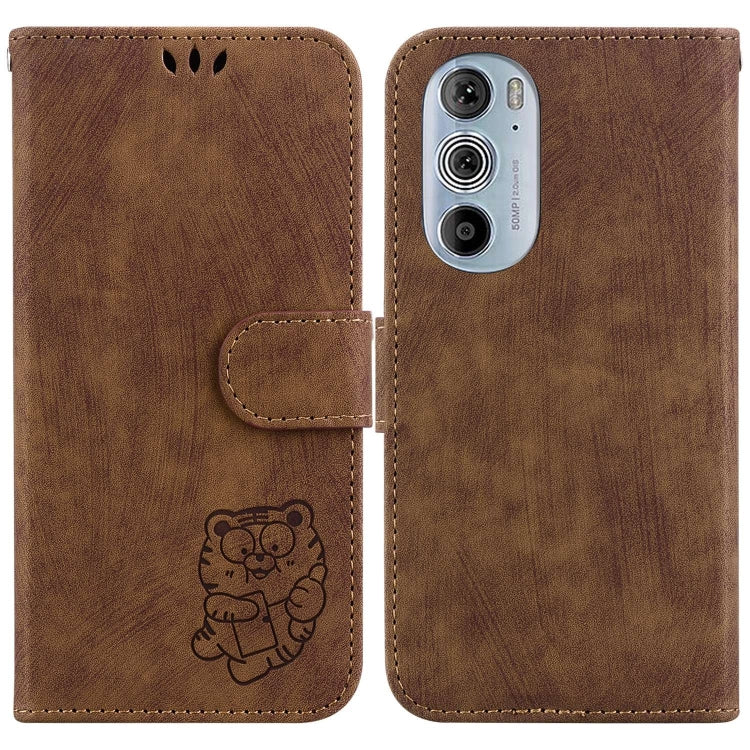 Funda para Motorola Edge 30 Pro / Edge + (2022) de Cuero con Relieve Little Tiger (Marrón)